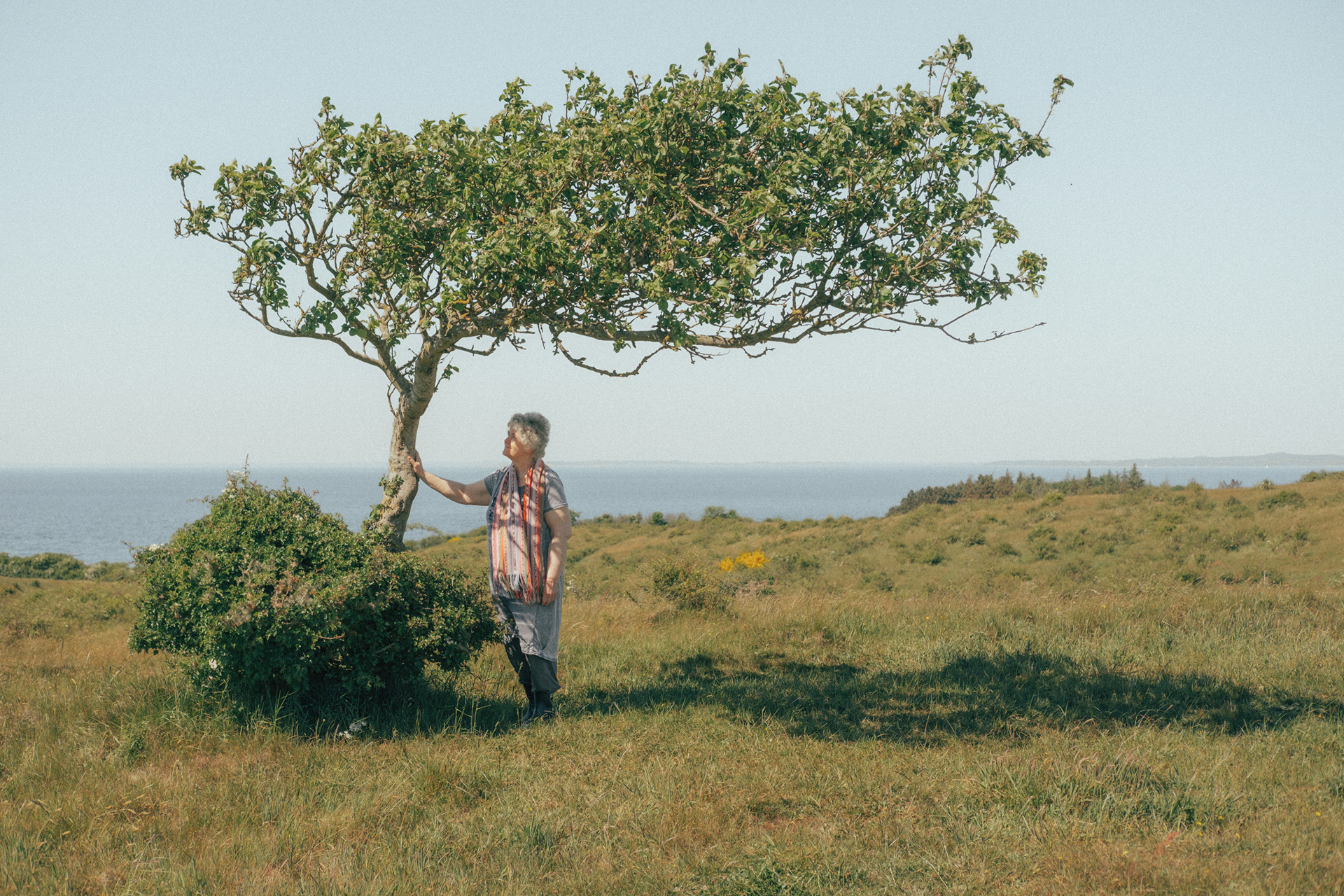 On a hill in Langdalen, near Nordby Bakker and not far from Eva’s home, a lone tree leans over the wild grass, casting the only shadow in the area. At first glance, it appears solitary, cut off from the surrounding woodland. But beneath the ground, its roots branch out and intertwine with the other trees, anchoring it through every kind of weather.